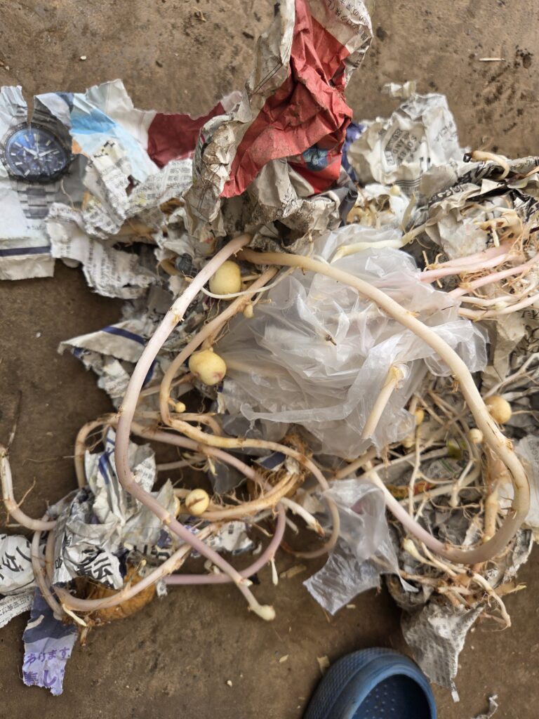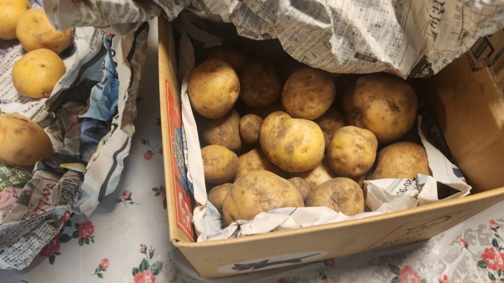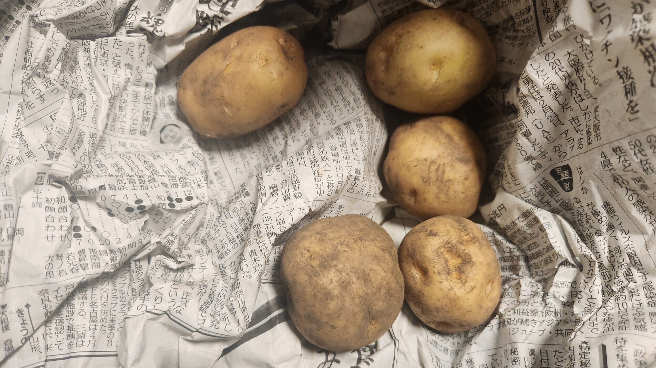 👉 新聞紙の中で子芋が誕生している状態🥔✨